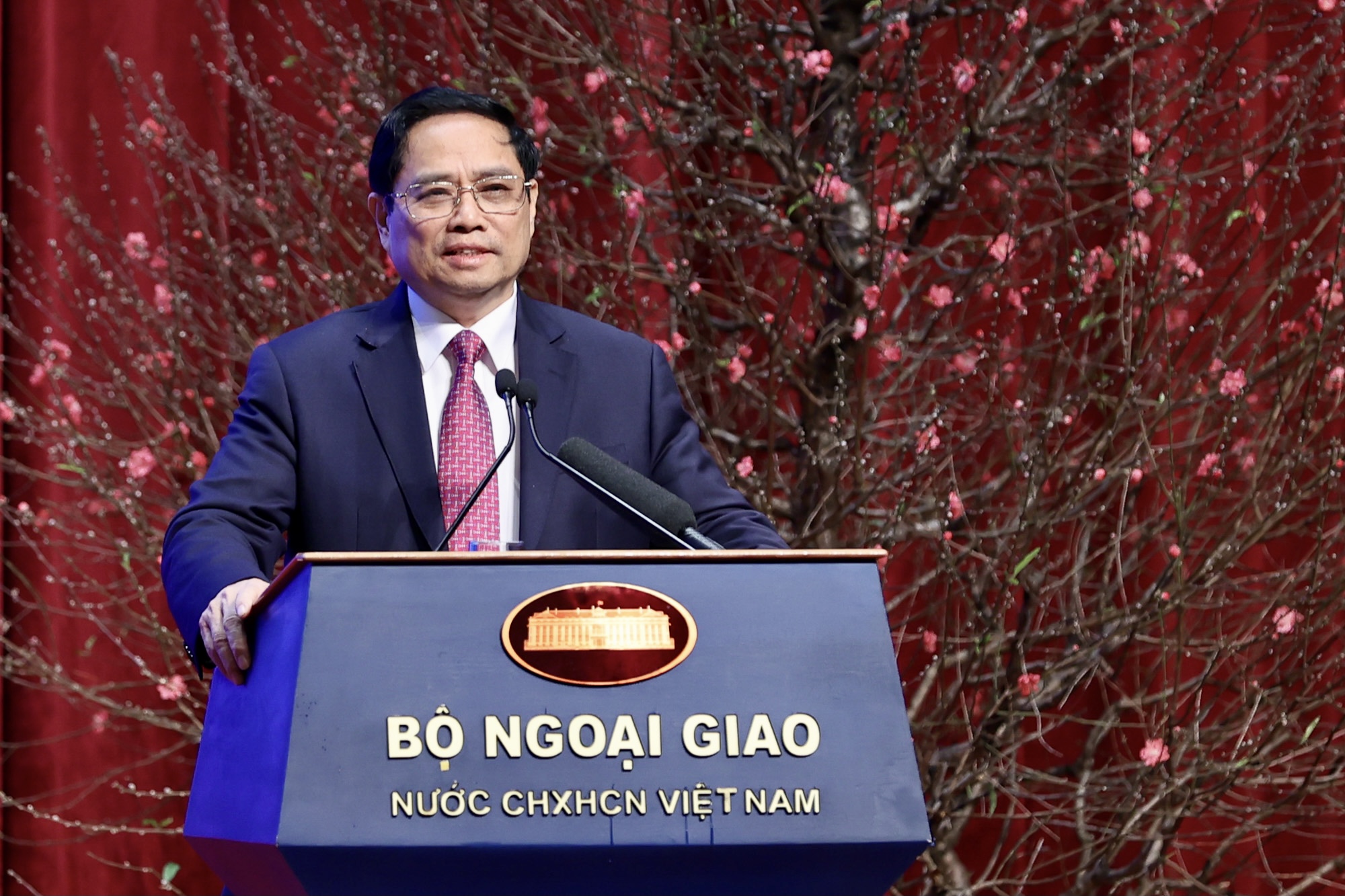 Trong bối cảnh quốc tế, khu vực diễn biến nhanh chóng, phức tạp, khó lường, cạnh tranh chiến lược gay gắt, thuận lợi và thách thức đan xen, Thủ tướng đề nghị ngành ngoại giao tiếp tục vai trò tiên phong, đi trước mở đường giữ vững môi trường hòa bình, ổn định, góp phần quan trọng vào công cuộc bảo vệ vững chắc độc lập, chủ quyền, thống nhất và toàn vẹn lãnh thổ và phát triển đất nước trong tình hình mới.
