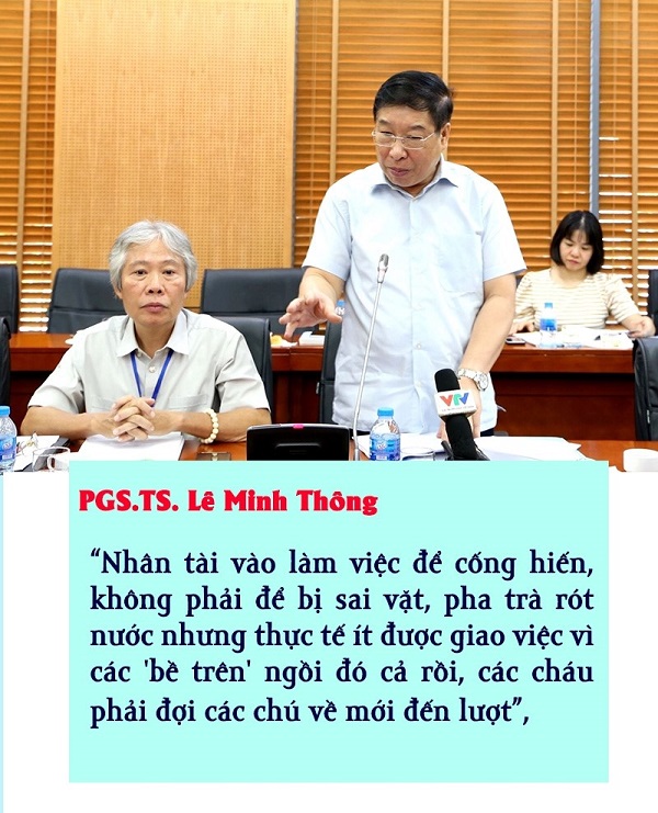 “Nhân tài vào làm việc để cống hiến, không phải để bị sai vặt, pha trà rót nước nhưng thực tế ít được giao việc vì các "bề trên" ngồi đó cả rồi, các cháu phải đợi các chú về mới đến lượt”, ông Thông nhấn mạnh.