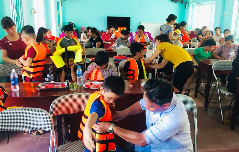 | Các thành viên mô hình Làng quê an toàn cho phụ nữ và trẻ em thôn Lũ triển khai các hoạt động tuyên truyền phòng, chống tai nạn đuối nước cho trẻ em (Ảnh: Hồng Duyên) |