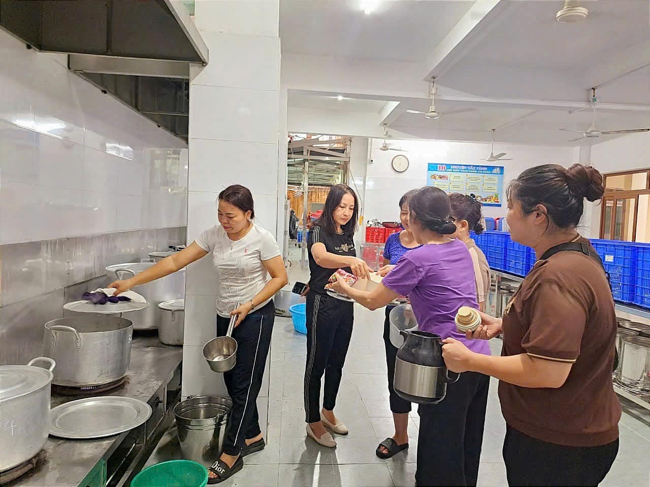 | Các thầy cô giáo nấu mỳ tôm cho người dân đang trú bão tại các điểm trường của quận Ngô Quyền (Hải Phòng). |