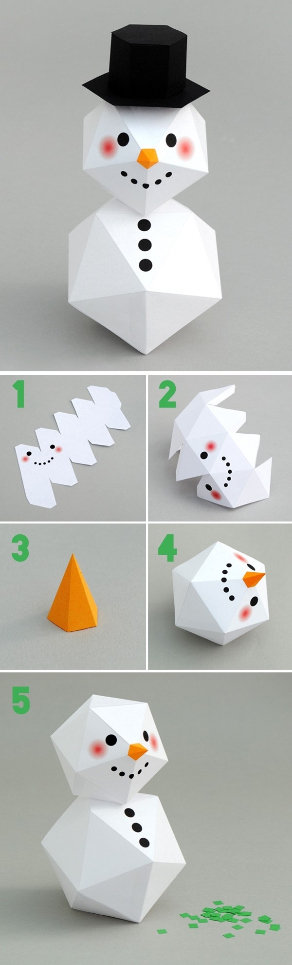 Tiếp theo đó, bạn gấp theo các đường thẳng in trên mẫu để lấy nếp, dùng keo để dán các cạnh của chúng lại với nhau thành phần đầu người tuyết.