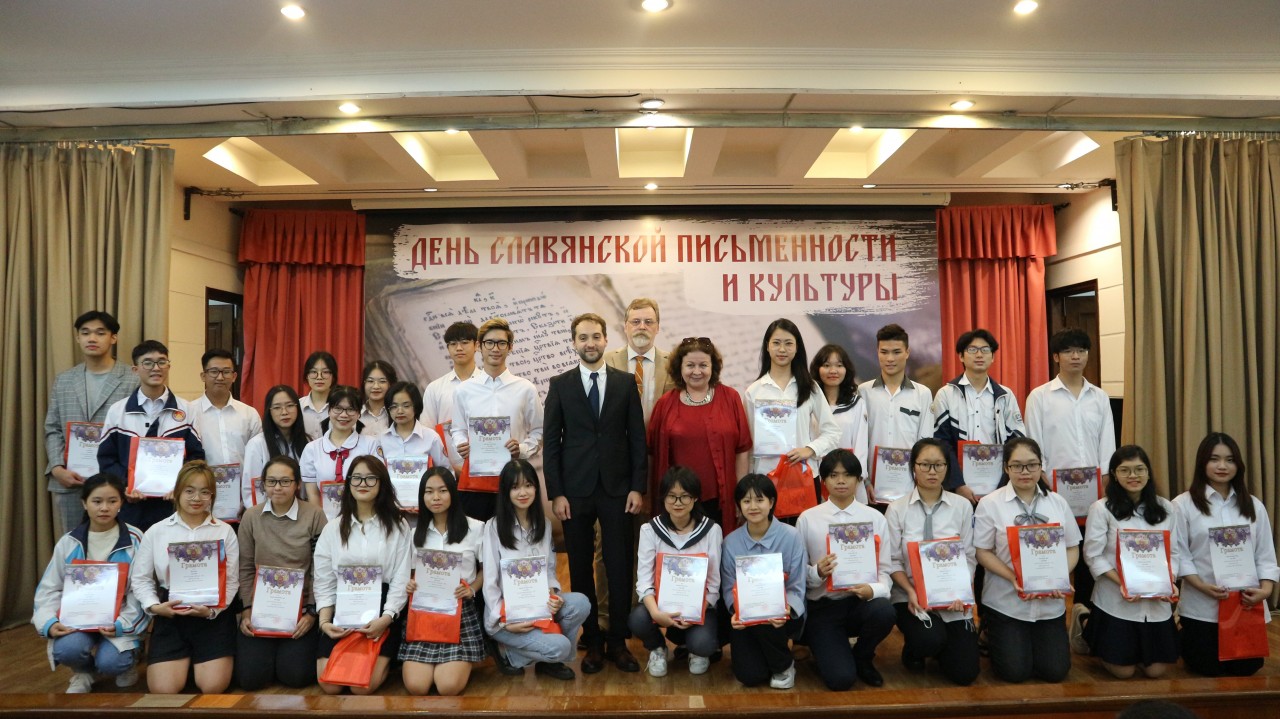 Phát biểu tại buổi lễ, Quyền Giám đốc Trung tâm Khoa học và Văn hóa Nga tại Hà Nội Andrey Borodenko cho biết, buổi lễ trao giải diễn ra đúng dịp kỷ niệm Ngày Văn tự Slavơ (24/5/2022) – đây là ngày tưởng nhớ công lao của hai anh em nhà Kiril và Metody (những người sáng tạo ra chữ viết Slavơ). Ông A.Borodenko gửi lời cảm ơn chân thành tới Bộ Giáo dục và Đào tạo Việt Nam vì sự hợp tác trong việc tuyển chọn ứng viên sẽ học tập tại các trường đại học ở Nga.
