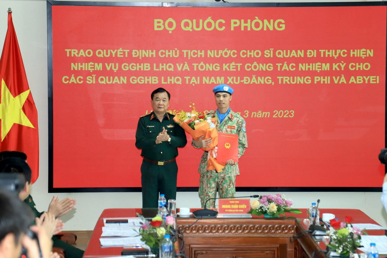 Chúc mừng 6 sỹ quan đã hoàn thành tốt nhiệm vụ trở về nước, Thượng tướng Hoàng Xuân Chiến khẳng định, những đóng góp của lực lượng gìn giữ hòa bình đã tạo nên dấu ấn của Việt Nam nói chung và Quân đội nhân dân Việt Nam nói riêng trên trường quốc tế ở môi trường đối ngoại đa phương.