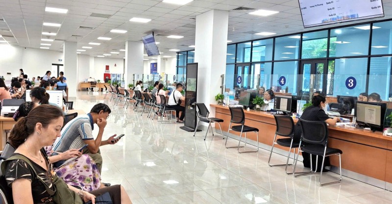 | Người dân, doanh nghiệp thực hiện các thủ tục tại Trung tâm Phục vụ hành chính công thành phố Hà Nội được miễn 100% phí từ ngày 9/6 - 31/12/2025. (Ảnh: T.L) |