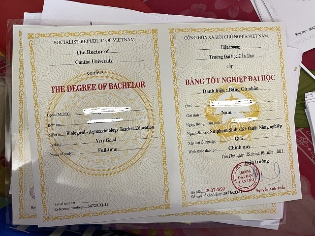 Tiến hành khám xét chỗ ở của V., công an thu giữ 46 phôi GPLX dạng thẻ nhựa, 66 phôi căn cước công dân dạng thẻ nhựa, 11 CCCD giả, 4 CMND giả, 7 GPLX giả đã in thông tin, 598 tem bảo mật các loại, các văn bằng chứng chỉ tốt nghiệp đại học, cao đẳng, trung cấp, 1 dấu để đóng dấu nổi CMND và nhiều phương tiện, tài liệu khác có liên quan.
