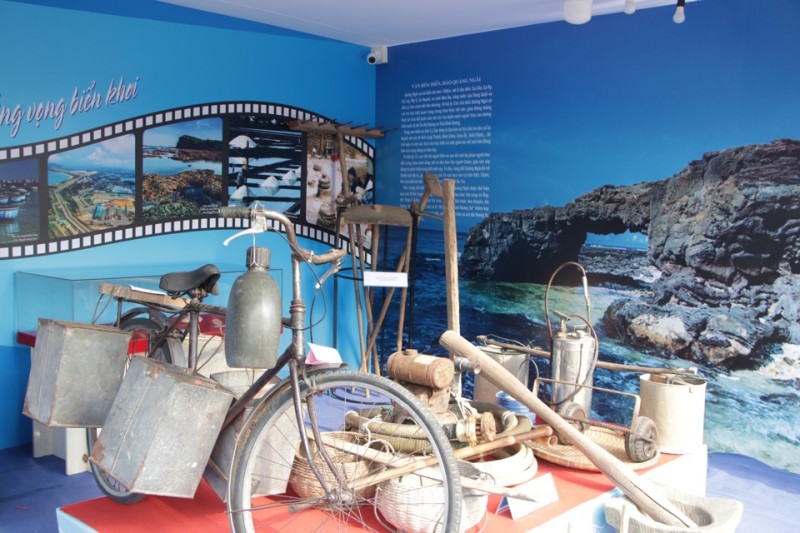 Triển lãm Di sản văn hóa biển, đảo Quảng Ngãi trưng bày hơn 200 hiện vật, hình ảnh, tư liệu, liên quan đến Lễ khao lề thế lính Hoàng Sa, lễ hội đua thuyền truyền thống tứ linh; một số hình ảnh, hiện vật về các hoạt động sản xuất, trồng trọt, đánh bắt hải sản của người dân Lý Sơn; những thắng cảnh đẹp, tiêu biểu của đảo Lý Sơn. Ngoài ra, còn có nhiều cổ vật thuộc nền Văn hóa Sa Huỳnh được trưng bày.