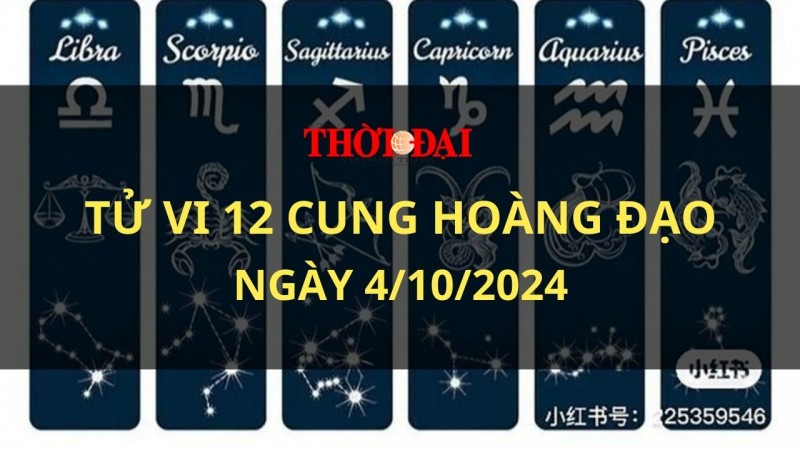 *Thông tin “Tử vi hôm nay 12 cung hoàng đạo 4/10/2024” mang tính chất tham khảo, chiêm nghiệm.