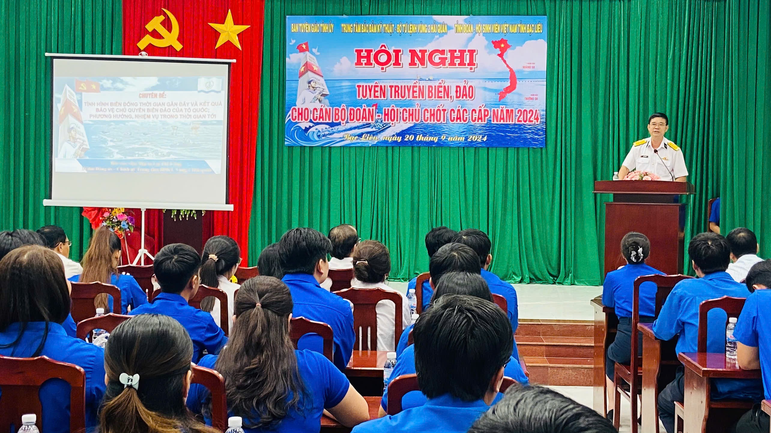 Trước đó, tại thành phố Bạc Liêu, Đại tá Lại Thế Công, Chính uỷ Trung tâm BĐKT đã thông tin cho hơn 100 cán bộ đoàn, hội chủ chốt các cấp của tỉnh về tình hình Biển Đông thời gian gần đây; dự báo tình hình Biển Đông và quan điểm, chủ trương, giải pháp đấu tranh, phương hướng, nhiệm vụ bảo vệ chủ quyền biển, đảo trong thời gian tới; xây dựng quân chủng Hải quân cách mạng, chính quy, tinh nhuệ, hiện đại và kết quả thực hiện nhiệm vụ bảo vệ chủ quyền biển, đảo của Tổ quốc.