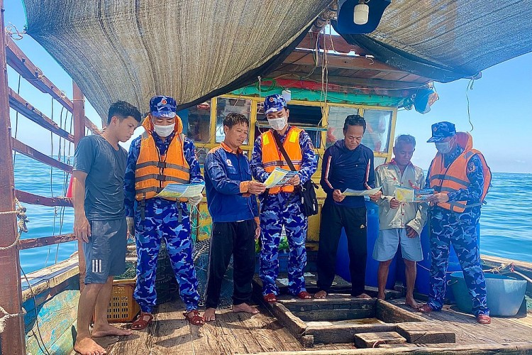 Tuyên truyền về chống khai thác hải sản bất hợp pháp, không khai báo và không theo quy định (IUU) cho ngư dân làm ăn trên biển là một trong những công tác tuyên truyền phổ biến Luật cảnh sát biển Việt Nam đến với người dân.