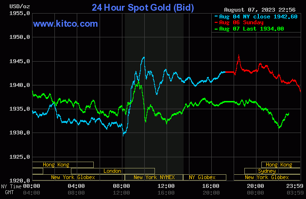 Giá vàng giao ngay trên Kitco hiện đang ở mức 1.934 USD/ounce, giảm 8,6 USD, tương đương 0,44% so với chốt phiên trước. Quy đổi theo tỷ giá tại Vietcombank, giá vàng thế giới đang được giao dịch ở mức 55,7 triệu đồng/lượng, thấp hơn giá vàng trong nước khoảng 11 triệu đồng/lượng.