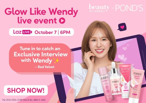 Sự kiện trực tiếp POND’S x LazMall Glow Like Wendy vào lúc 18 giờ tối ngày 7 tháng 10 tới.