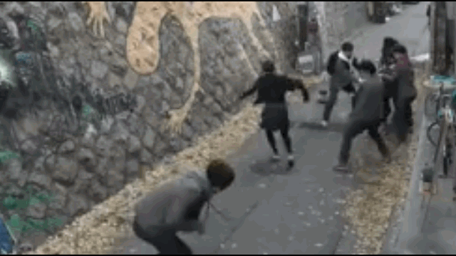 Khi thông báo từ sân ga vang lên báo hiệu đoàn tàu sắp tới, một người đàn ông phát hiện sự việc đã vội nhảy xuống dưới đường ray, giúp người ngồi trên xe lăn trèo lên phía trên. Nhiều người dân xung quanh cũng xúm vào giúp đỡ hai người họ.