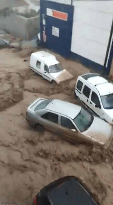 Mưa lớn kéo dài đã gây ra tình trạng ngập lụt nghiêm trọng tại hai thành phố Cartagena và Granada của Tây Ban Nha, hàng loạt ô tô bị cuốn trôi theo dòng lũ cuồn cuộn.