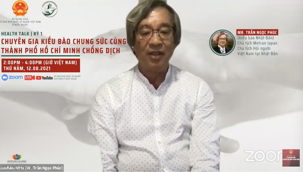 Ông Trần Ngọc Phúc (kiều bào Nhật Bản) - Chủ tịch Metran Japan, Chủ tịch Hội người Việt Nam tại Nhật Bản đã chia sẻ tại tọa đàm về chủ đề “Chiến lược tổng quát về sử dụng máy thở cho bệnh nhân Covid-19 ở Việt Nam”.