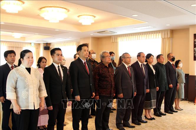 | Các đại sứ/đại biện lâm thời của 10 nước thành viên ASEAN tham dự lễ kỷ niệm ở Tokyo (Ảnh: Đào Thanh Tùng-PV TTXVN tại Nhật Bản). |