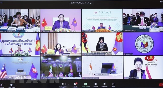 Đại biểu các nước ASEAN tham dự Phiên toàn thể Hội nghị Thượng đỉnh Lãnh đạo nữ ASEAN lần thứ 2 theo hình thức trực tuyến. Ảnh: TTXVN |