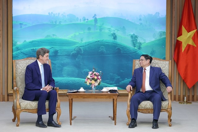 Đặc phái viên John Kerry cảm ơn Thủ tướng Chính phủ Phạm Minh Chính đã dành thời gian tiếp đoàn, khẳng định Hoa Kỳ nhất quán coi trọng quan hệ với Việt Nam, ủng hộ Việt Nam đóng vai trò chủ động tại khu vực, ứng phó với các vấn đề quốc tế, trong đó có biến đổi khí hậu; đánh giá cao việc Việt Nam cam kết giảm phát thải ròng bằng 0 vào năm 2050.