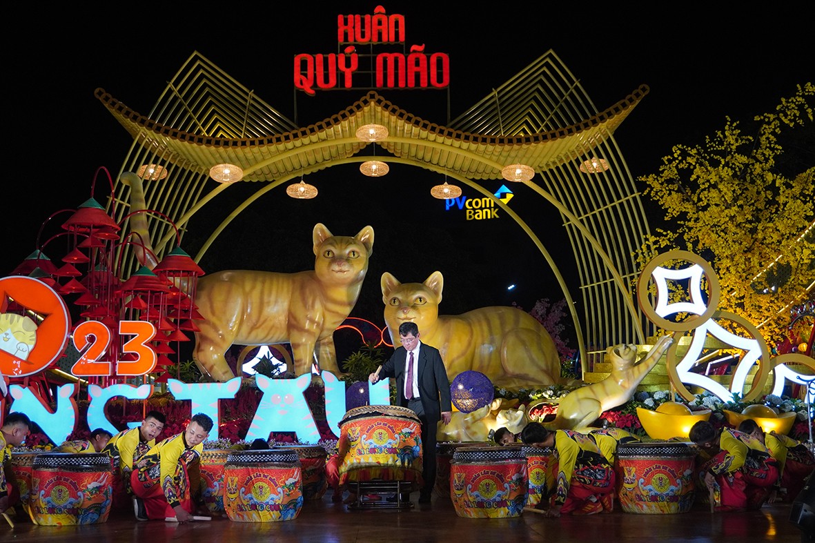 | Ông Trần Đình Khoa, Uỷ viên Ban Thường vụ Tỉnh uỷ, Bí thư Thành uỷ Vũng Tàu đánh trống mở màn Ngày hội Lân Sư Rồng. |
