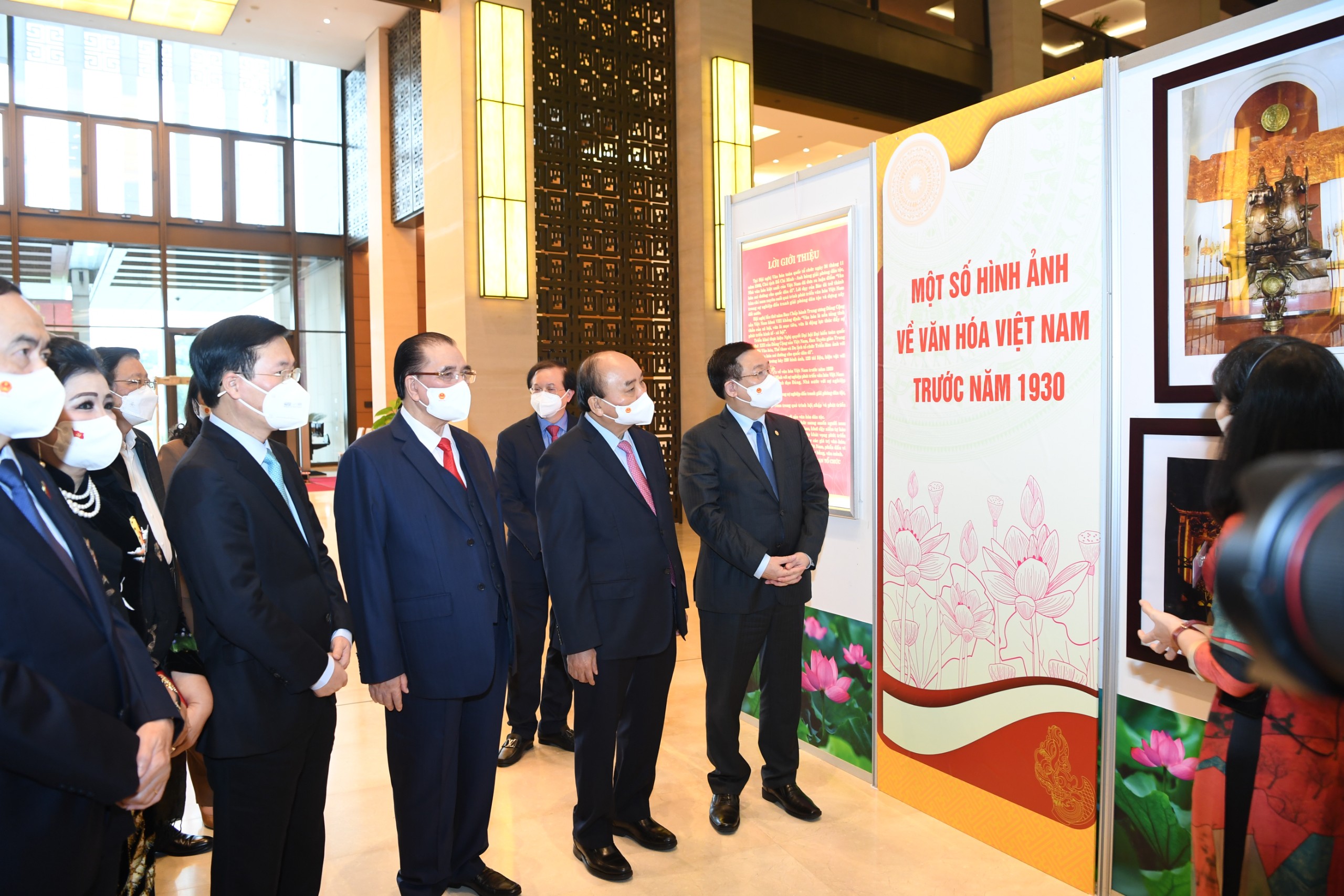 | Các đồng chí lãnh đạo Đảng, Nhà nước và đại biểu tham quan Triển lãm "Văn hóa soi đường cho quốc dân đi" trước giờ khai mạc Hội nghị Văn hóa toàn quốc. Ảnh: VGP/Nguyễn Hoàng |