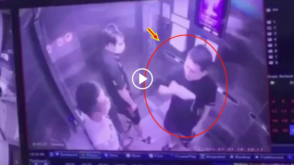 | Hình ảnh nam thanh niên nhổ ra thang máy |
