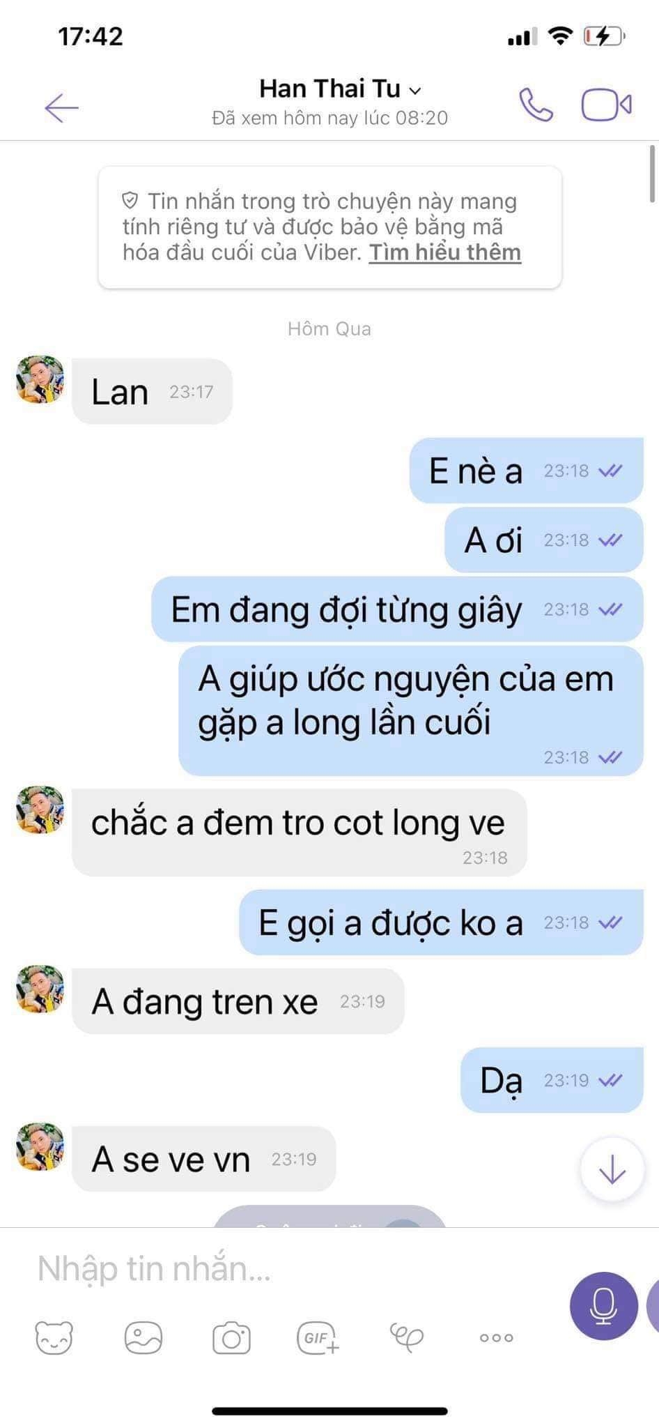 Hình ảnh đoạn tin nhắn giữa vợ Vân Quang Long và kẻ lừa đảo: